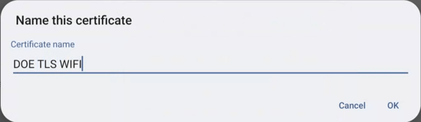 - Assign a name for the Certificate (e.g "DOE TLS WIFI")